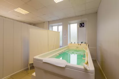 Отдельные кабинеты обустроены под водные процедуры. В здравнице есть ванное отделение, где проходят лечение с помощью ванн и душей. Те, кто приехал на лечение органов дыхания обязательно посетят ингаляторий, где оборудованы индивидуальные места для проведения ингаляций с фитопрепаратами и минеральной водой. Кроме этого, в санатории предусмотрены занятия с психотерапевтом, что помогает пациентам сохранять позитивный настрой, улучшать эмоциональное состояние и приближать таким образом своё выздоровление.