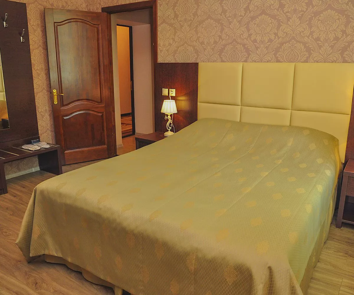 В санатории «им. Анджиевского» г. Ессентуки есть 2-комнатные 2-местные номера «Люкс». В спальне расположена двуспальная кровать и шкаф для одежды. Около каждого спального места есть светильники. Также здесь находится туалетный столик с большим зеркалом. Оформление номера выполнено в светлых тонах с использованием качественного текстиля и мебели.